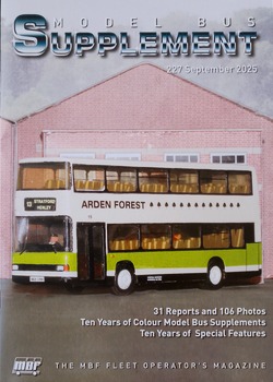 Below is an overview of the contents of the Model Bus Supplement for September 2025 - The MBF Fleet Operator's Magazine This quarterly publication is an optional extra available to MBF members who either operate or are interested in model fleet operations which are based on either real life or fictional operators. The Fleet News section forms the main part of each issue and covers individual operator developments in terms of both services & fleet changes. This is provided in the same style as that found in the long running former Ian Allan & now Key Publishing "Buses" magazine. The Fleet News section also includes a generous selection of colour photographs illustrating the latest models & livery changes etc. The Supplement also has special feature articles which can include more in depth coverage of a particular fleet, or focuses on a certain vehicles tytpe or other land marks events such as operator & vehicle manufacturer anniversaries etc. The Model Bus Supplement - Issue 227 September 2025 - 32 pages ![]() ![]() ![]()