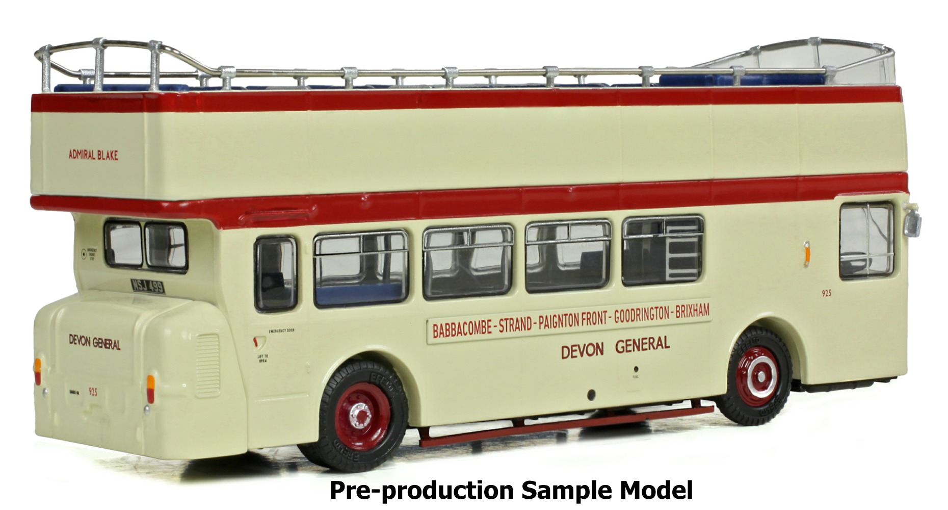 | Notes | Model has side route boards reading ""Babbacombe - Strand - Paignton Front - Goodrington - Brixham"^quot; & carries the name "Admiral Blake". EFE Road Model Decription: This ‘Sea Dog’ brings us right up to date and depicts the preserved registration MSJ499, which was originally 925GTA ‘Admiral Blake’. It is presented in its current condition, as restored in Devon General cream and red as number 925, and proudly displaying its original name. In this guise ‘Admiral Blake’ can still be seen at bus rallies and on hire duties. |