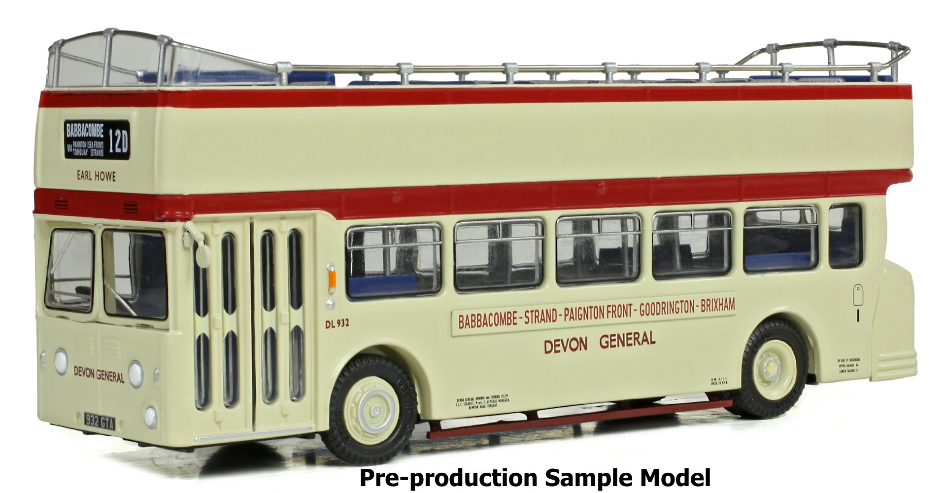| Model 1 | (E40501) - Leyland Atlantean MCW Open Top “Sea Dog” Devon General Fleet Number: DL932 - Registration 932 GTA - Route: 12D Babbacombe via Paignton (Sea Front) Torquay (Strand) Livery: Cream with red between decks bands. |