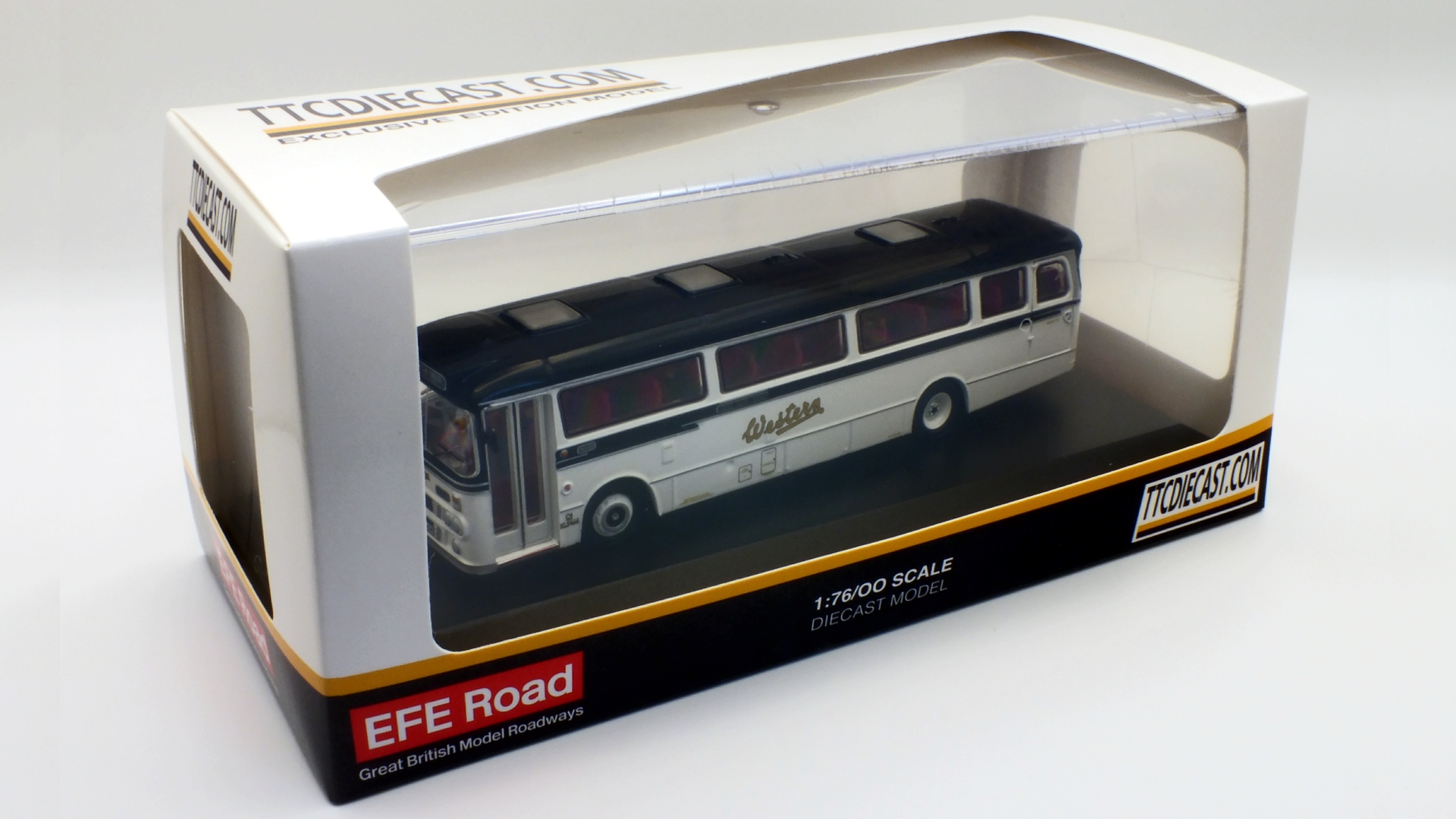 | Below are a selection of photographs showing the final production versions of two of the recently released EFE Road Alexander Y Type models. These are re-tooled versions of the original EFE models and feature new driving mirrors and roof lights with frosted glazing. Both models are priced £46.95 TTC Diecast Commissioned Models The models illustrated below are exclusive to TTC Diecast and are can be ordered via the TTCDiecast.com online store. E39101Z Lincolnshire Roadcar NBC 1440 (SJA 363J) / Route 850 Cleethorpes - Alexander Y Type (Two leaf doors with coach seats) - Era 1982-1994 E39105Z Western Scottish C4 KL2466 (SCS 335M) / Route 15 Ardrossan (Sorbie Rd), Via Clyde Tunnel - Alexander Y Type (Two leaf doors with coach seats) - Era 1971-1981 / Preserved Below is a higher resolution set of photographs along with additional photographs of both models & the packaging which can be viewed as a slide show on YouTube, (Please use the Watch on YouTube link to access full screen mode.) Videos have also been added for the Clydeside 2000 set & Alexander Y models E39202 Strathtay Scottish & 39201 Stevenson of Uttoxeter is previous two news items below, |