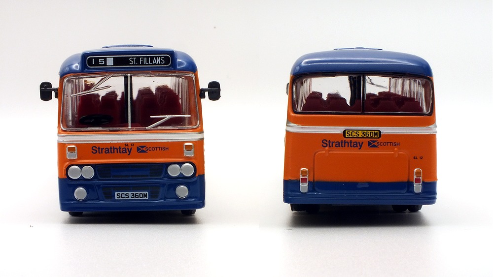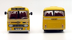 | Below are a selection of photographs showing the final production versions of two of the recently released EFE Road Alexander Y Type models. These are re-tooled versions of the original EFE models and feature new driving mirrors and roof lights with frosted glazing. Both models have a UK RRP £46.95 Thanks are extended to Bachmann Europe for supplying the models illustrated below. Standard Issue Models E39102 Strathay Scottish SL12 (SCS 360M) / Route 15 St. Fillans - Alexander Y Type (Two leaf doors with coach seats) - Era 1982-1994 E39201 Stevensons of Uttoxeter 18 (MFR 18P) / Route X38 Burton via Lichfield - Alexander Y Type (Four leaf doors with coach seats) - Era 1982-1994 Door Variations The only difference I have noted between the E391xx & E392xx tooling variants, is the type of folding passenger door. E391xx models have two leaf doors while E392xx models have four leaf doors. Below is a higher resolution set of photographs along with a number of additional photographs of both models which can be viewed as a slide show on YouTube, (Please use the Watch on YouTube link to access full screen mode.) |