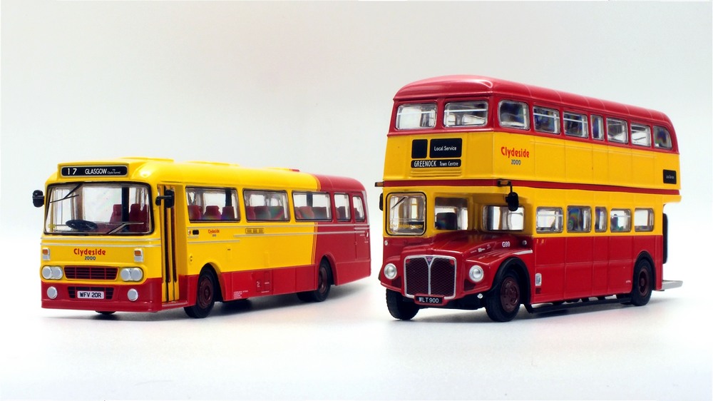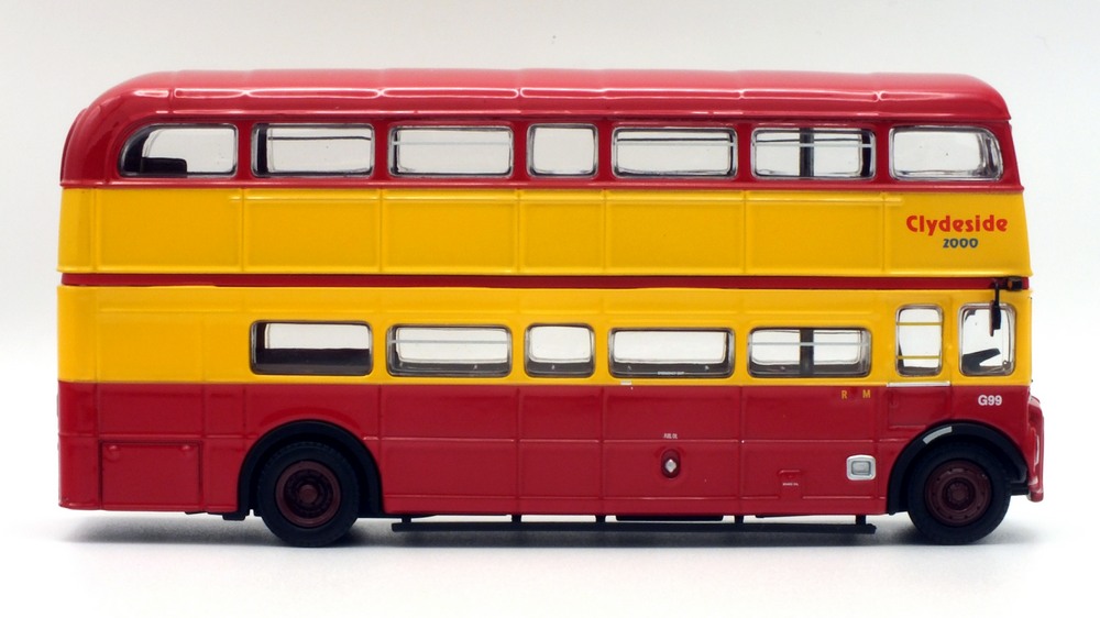 | Below are a selection of photographs showing the final production versions of the two models included in the recently released EFE Road Clydeside 2000 gift set. Thanks are extended to Bachmann Europe for supplying the set illustrated below. Standard Issue Gift Set E99944 Clydeside 2000 Set - AEC RML Class Routemaster & Alexander Y Type Dual Purpose Bus - UK RRP £93.95 E99944 Clydeside 2000 Set Packaging & Contents E99944 (model a - E39202) Clydeside 2000 - Alexander Y Type Dual Purpose Coach 630 (WFV 20R) - 17 Glasgow via Clyde Tunnel E99944 (model b - E42305) Clydeside 2000 - AEC RML Class Routemaster G99 (WLT 900) - Local Service Greenock Town Centre Below is a higher resolution set of photographs along with additional photographs of both models & the packaging which can be viewed as a slide show on YouTube, (Please use the Watch on YouTube link to access full screen mode.) |