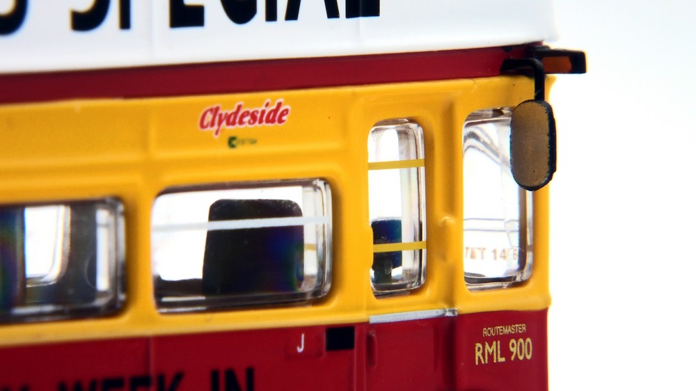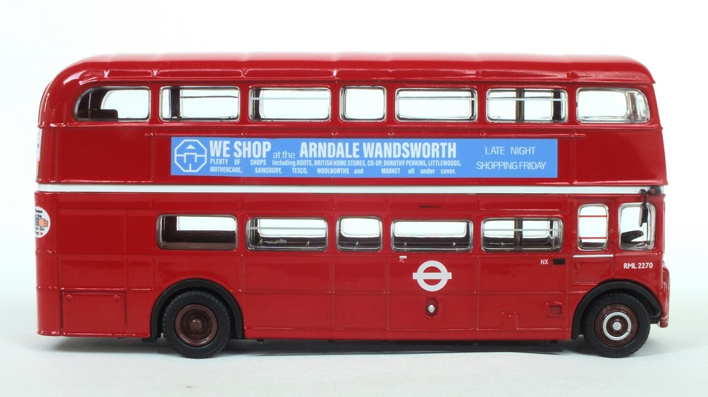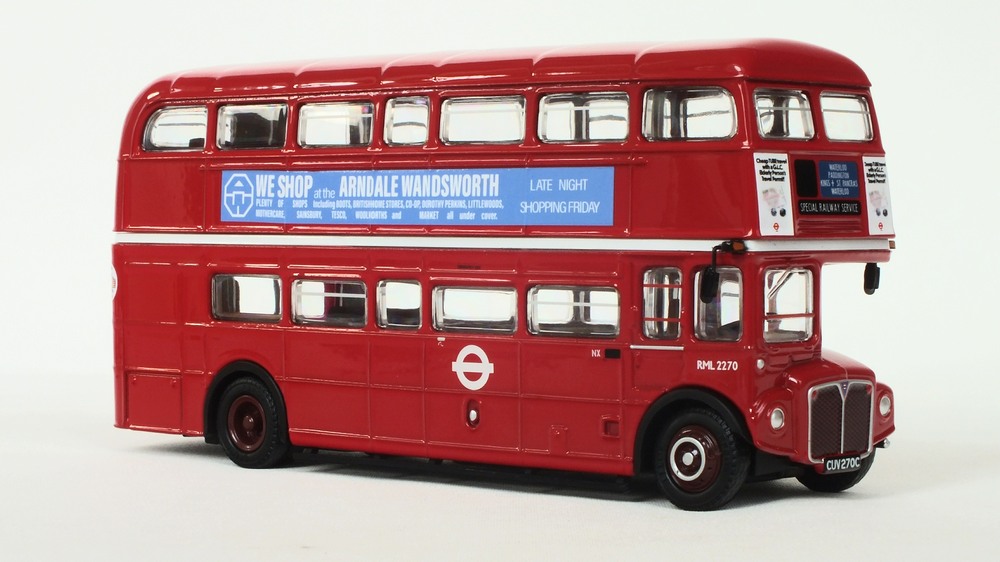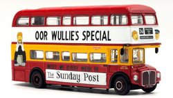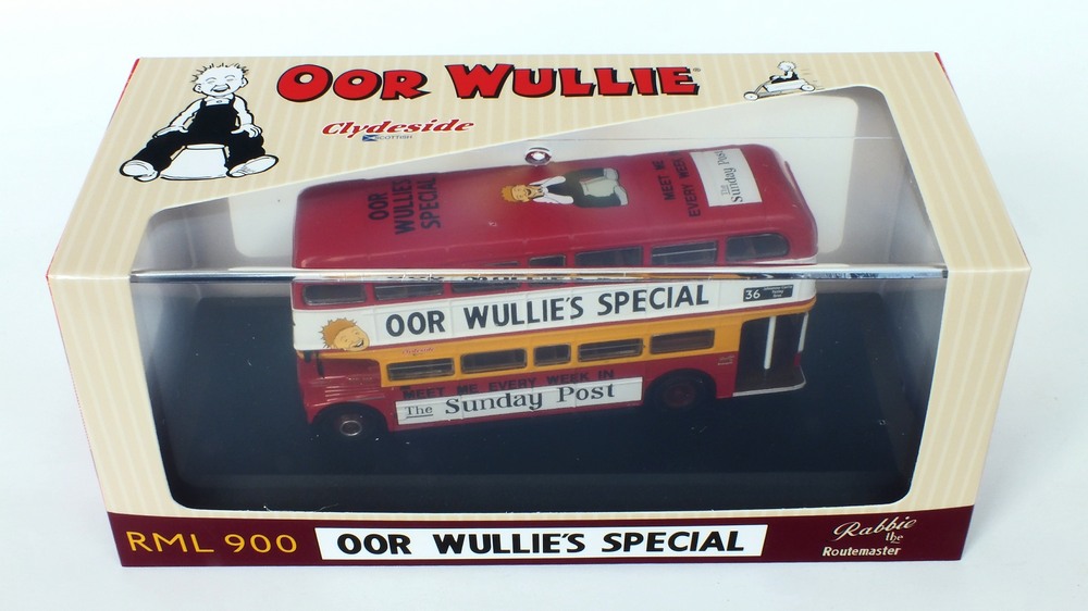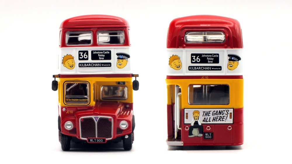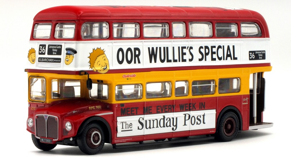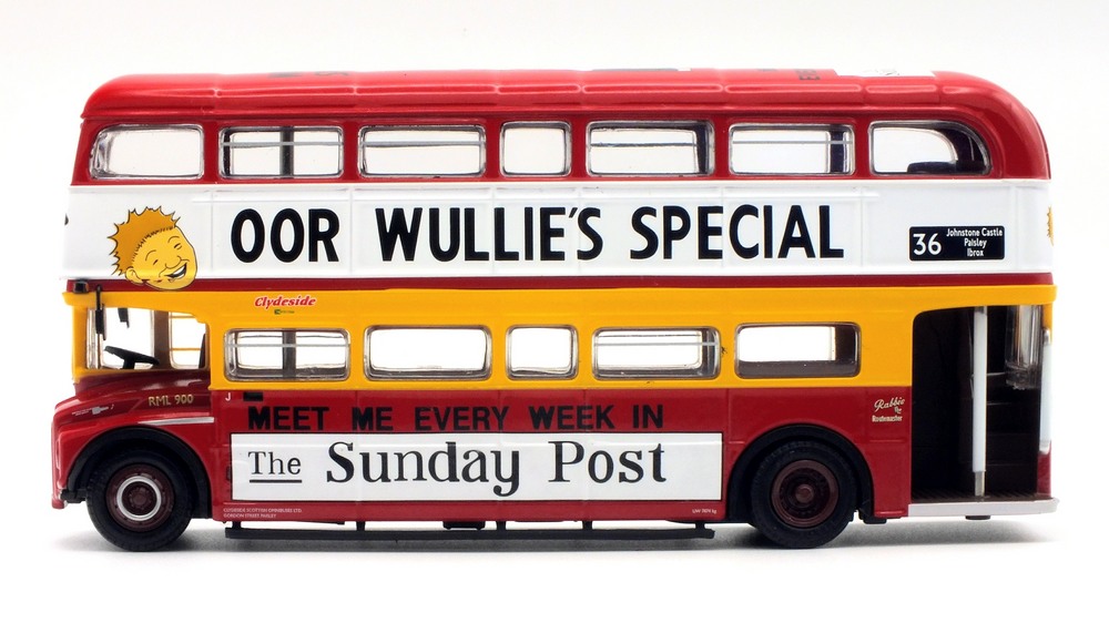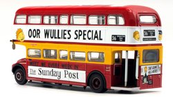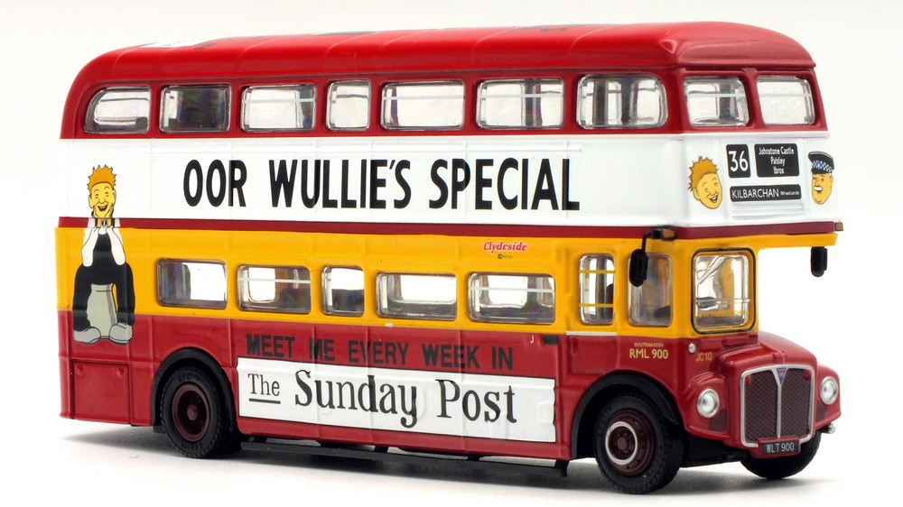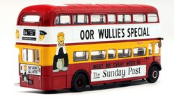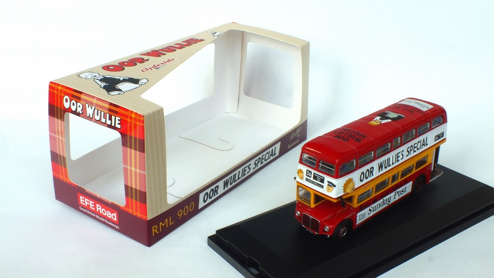 This model depicts Clydeside Scottish JCL10/RML 900 in the special “Oor Wullie's Special” livery used to promote The Sunday Post newspaper. The model depicts the vehicle in its March 1989 condition after the addition of the JC10 fleet numbers with blinds set for route 36 to Kilbarcham Wheatlands. RML 900 sustained serious accident & was deemed uneconomic to repair by London Transport, Clydeside Scottish acquired the vehicle & repaired it, when it re-entered service in 1988 it was the first operational RML outside London. This model should still be available from UK retailers along with E42304 which depicts Southend Transport 121 / RCL2256 on route 1 (see 16 Dec post below). These models have a UK RRP of £54.95 & £46.95 resp. The higher price for the Oor Wullie's model is likely linked to it being a licensed item & more complex model & packaging decoration. |