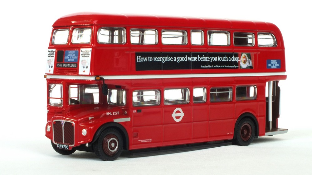 This model depicts Upton Park gargaes' RML2738 in the special branded livery for routes 15/15A used from 1985. The vehicle was from the final batch of RML vehicles delivered to London Transport in 1967. The vehicle is depicted working the 15A service to Upton Park Priory Road and carries Louis Jean side advertisements. This model should be available from UK retailers now along with E42303 (see 16 Dec post below) which depicts London Transport RML 2270 (CUV 270C) working on a special Central London Railway service. Both models have a UK RRP of £46.95. |