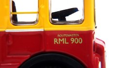 This model depicts Southend Transport 121 (CUV 236C) in the operators blue & white livery Transport red livery with with blinds for Route 1 bound for Southend Central Bus Station. RCL2256 was rebuilt with an RML style open platform following accident damage to its orginal RCL Greenline style rear entrance. This model should still be available from UK retailers along with E42301 which depicts Clydeside Scottish RML900 in Oor Wullie special livery. These models have a UK RRP of £46.95 & £54.95 resp. Thanks are extended to Bachmann Europe for supplying the sample model pictured below. I will post photographs of the remaining pair once my own examples arrive later this week. |