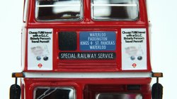 This depicts New Cross Garage's RML 2270 (CUV 270C) in 1980's era London Transport red livery with white between decks band & roudels working a Special Railway circular Service linking central London stations Waterloo, Paddington, Kings Cross & St Pancras. This model should be available from UK retailers now along with E42302 which depicts London Buses Route 15/15A branded RML 2738 (SMK 738F) on route 15A bound for Upton Park Priory Road. Both models have a UK RRP of £46.95. Thanks are extended to Bachmann Europe for supplying the sample model, and last months release E42304 Southend Transport RCL2256, photographs of which will be uploaded later today (16 Dec). |