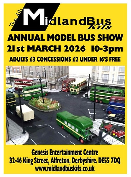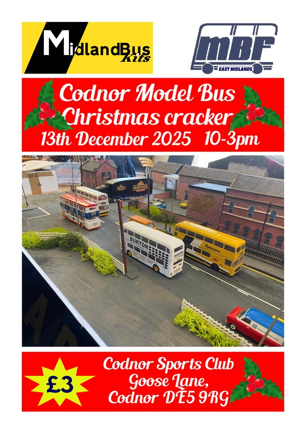 Midland Bus Kits' next event is the Codnor Model Bus Christmas Cracker![]() ![]() The latest free newsletter for December 25 is now also available on the Midland Bus Kits site, and covers all the latest news from model bus kit suppliers along with tips, model galleries & this month special features on Barton Transport & Red Rover models. ![]() |