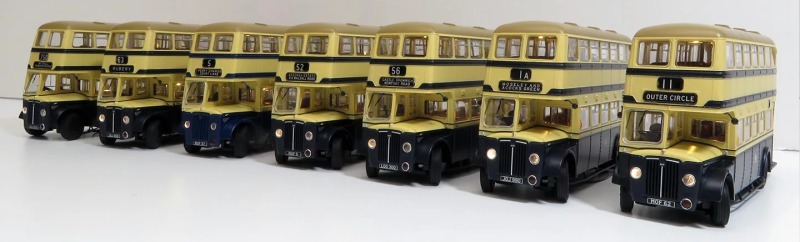 | This spotlight focuses on the latest model release by Bachmann Europe in its Exculsive First Editions range. The model is now available from Bachmann appointed stockists has a RRP of £29.95. London Transport celebrated its fiftieth birthday on 1st July 1983 and in commemoration, a series of Golden Jubilee events were held at various LT Works and bus garages from April to October 1983. Nearly twenty LT vehicles received Golden Jubilee liveries, several in an attractive rendition of the old pre-1933 General livery. On 2nd/3rd July 1983, a special gala weekend was held at Chiswick and Acton Works, where the only Golden Jubilee single decker took part. Leyland National LS194 registration THX 194S allocated to Croydon Garage ran in this livery from June 1983 until the end of the year, being repainted red early in 1984. Shown with route 234A blinds at the front, the rear triple track number blinds did not have letters and therefore 234 was displayed at the back. The original silver roof was overpainted white just prior to the Chiswick Gala. Below are a selection of large photographs showing the model kindly supplied by Bachmann. Each photograph will open in new window/tab. A full HD Video slide show with some additional images is also available below in the form of a YouTube video. Below is a video slide show of all the above photographs & a few extras. Click the YouTube logo to view at full size. This isn't the first model produced depicting one of the many special liveries applied to London vehicles during 1983 to mark London Transport's Golden Jubilee. Here's a summary of the other models produced & some links to photographs of those so far overlooked. The Gold Liveries Two vehicles received gold liveries, Routemaster RM1983 & Leyland Titan T1983, RM1983 hasn't been reproduced in 1/76th scale yet, but Sunstar did it in 1/24th. Sunstar H2911 - RM1983 EFE 28823 T1983 (aka T747) The 1933 Liveries Most of the other special liveries applied were based on the early London Transport livery of red with white window surrounds & silver roof. These schemes were applied to the following vehicles: DS1933, LS194, M359, RM8, RM17, RM1933, RM2116 & Ensignbus DF1682. The Plumstead Garage Sports Club also applied the livery to their privately owned RMA56. Five of buses these have been reproduced in model form to date although again RM1933 can only be found in Oxford Diecast N & Sunstar 1/24th scales. EFE 25706 (Set 99918) DS1933 EFE E16611 LS194 Sunstar H2909 RM1933 EFE 15619 (Set 99911) RM2116 EFE 28003 Ensignbus DF1682 Here's some links to photographs of the other four vehicles not yet available in model form. M 359 (Flickr) - RM 8 (Flickr) - RM17 Flickr) - RMA 56 (Flickr) London General Liveries Two vehicles, MCW Metrobus M57 & Leyland Titan T66 received London General style liveries. Both vehicles have been modeled in 1/76th scale. EFE 28826 (Set 99938) T66 Corgi OM45102 M57 The Other Liveries There were three other special liveries. None of these have been reproduced on any models despite there being suitable castings available in the EFE range. Daimler Fleetline B20 D2629 received a striking chocolate & cream livery in the style of that applied to Croydon Corporation Trams. Mark I Leyland National LS402 was given a simpler red & gold livery at Harrow Weald Garage while the lowest numbered Mark 2 National LS438 gained a revised Red Arrow livery with white roof & LT 50 logos at Ash Grove. Staff at various garages also applied gold between decks bands & LT 50 logos to several other vehicles and a number of garage "showbuses" were also restored to older style LT liveries. Here are some links to photographs of these vehicles. D2629 (Flickr) - LS402 (Flickr) - LS438 (Flickr) |