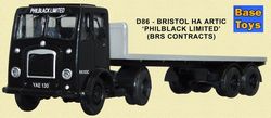 | The following three new models have been listed as future releases on wholesaler John Ayrey's website. No pictures have been released as yet of the models. D86 Bristol HA Articulated Flatbed - Philblack Ltd D87 Leyland Tanker - National Benzole D88 AEC Monarch Dropside - B.R.S. | ||