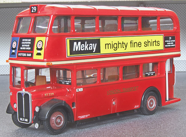101003C | London Transport RT3254 - Red (Route 50) 50 Years of the RTs Adverts (Beige between decks band) | London RT Double Deck Bus - 1989 | 2 |