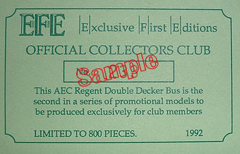 | Notes | Limited edition of 800 models produced for members of the EFE Official Collectors Club in 1992. Supplied with a numbered certificate. | ||