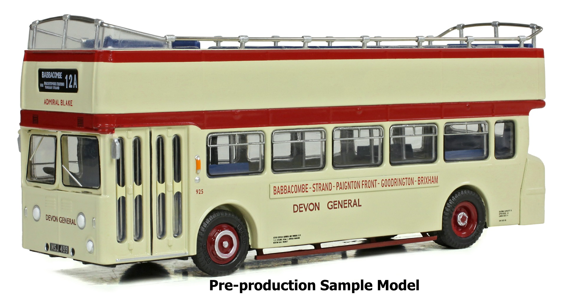 | Notes | Model has side route boards reading ""Babbacombe - Strand - Paignton Front - Goodrington - Brixham"^quot; & carries the name "Admiral Blake". EFE Road Model Decription: This ‘Sea Dog’ brings us right up to date and depicts the preserved registration MSJ499, which was originally 925GTA ‘Admiral Blake’. It is presented in its current condition, as restored in Devon General cream and red as number 925, and proudly displaying its original name. In this guise ‘Admiral Blake’ can still be seen at bus rallies and on hire duties. |