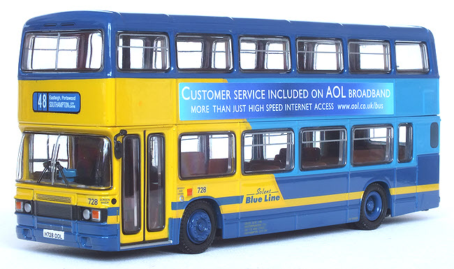 | Livery | Dark blue upper deck windows surrounds, roof and skirt. Yellow area around windscreen and front first quarter sides, with thin band continuing around rear above skirt panels. Light blue lower deck window surrounds and between deck panels on the rear and side back three quarters. |