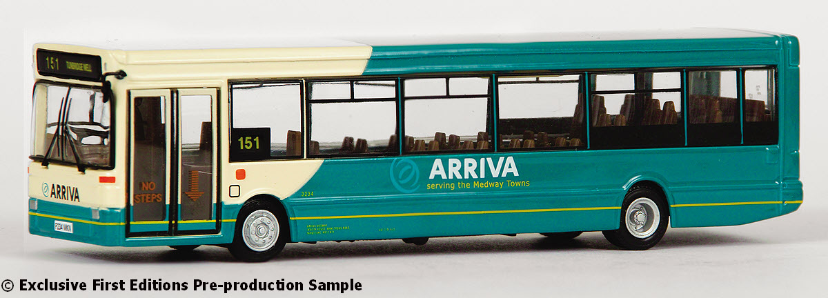 | EFE have published details and pictures of six new models, there are also details of the Oldham model mentioned in the last EFE subscriber's newsletter. Among the models announced is the first release of the new Dennis Dart SLF Plaxton Pointer Mk I, the single door model carries Arriva serving the Medways Town livery. |