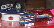 | EFE attended the "Goodbye to Redhill Road" event at the Cobham Bus Museum today, the weather started off rather damp but the rain eased off during the afternoon meaning I didn't get quite as soaked as I did at Showbus! The special Green Line RMC was on sale from the museum's shop and when I left there was still stock. A third party modified code 3 model based on the Museums earlier 2008 STD model 33601B was also available from the shop. This was available in three different versions with destinations for either route 13, 83A or 183. All three versions had sold out by midday however and it appears that all three were only produced in very small numbers. Single deck RM1368 the subject of a future EFE model made a rare appearance at the Cobham event. Turning to EFE, both Frank & Brenda Joyce were present and attracting a good audience to their display of forthcoming models. Included among the 25 or so models were fourteen new pre-production samples, comprising twelve standard release models and two subscriber's Christmas specials. Please note the details shown below are taken from the sample models and may be subject to change. 16130 Burnley Colne & Nelson - Leyland PD2 Highbridge Fleet number: 56 - Registration: ACW 622 - Route: Harle Syke 16226 Western National NBC - Bristol MW Coach Fleet number: 2906 - Registration: 621 DDV - Route: 310 Lynton 16532 City of Manchester - MCW Leyland Atlantean (apologies for the rather fuzzy front shot) Fleet number: 3626 - Registration: UNB 626 - Route: 40 Albert Sq 20450 Eastern Counties - Bristol VRT Series III Fleet number: 262 - Registration: RAH262W - Route: 726 Hemsby Beach 25306 East Yorkshire - AEC Regal Duple Half Cab Coach Fleet number: 503 - Registration: HWJ 990 - Route will be: Hull 26409 Lytham St Annes - Daimler Utility Fleet number: 23 - Registration: FTD 618 - Route: 11 Blackpool Talbot Rd Bus Station 31505 Platinum East London - AEC RM Routemaster Fleet number: RM1933 - Registration: ALD933B - Route: 15 Trafalgar Square 34906 Western National - Leyland Olympian Coach Fleet number: 1802 - Registration: A752VAF - Route: 83 Tavistock 27315 Wilts & Dorset - Leyland Titan TD1 Enclosed Staircase Fleet number: none - Registration: MW 8753 - Route: Weymouth 29625 Soveriegn (London) - Leyland Olympian Bus Fleet number: L308 - Registration: G308UYK - Route: 13 Golders Green Stn 35205 Devon General - Long 6 Bay BET Bus Production model will carry Fleet number: 9 - Registration: 9 RDV - Route: 9 Sidmouth 37401 Flowers Keg Bitter (Monkton Motors, Uxbridge) - Atkinson Articulated Tanker Lorry Fleet number: 118 - Registration: 6122 ME 30512 Tillingbourne - Guy GS Single Deck Bus (this is a slightly revised version of the model displayed at Showbus & has improved radiator detailing) The two models that will be offered to the EFE Subcription Service members in the next newsletter were also on display, these will be the Christmas specials this year but will be available earlier than is usual to beat the VAT increase in January. Details of how to join the EFE Subscription service can be found HERE 12119 Royal Blue (Yeovil Destination)- Harrington Cavalier Coach Fleet number: 403 - Registration: 540 CFJ - Route: Yeovil 30304 London Transport (green livery / route 406) - AEC RM Prototype Routemaster Fleet number: RM 2 - Registration: SLT 57 - Route: 406 Kingston The EFE model display |