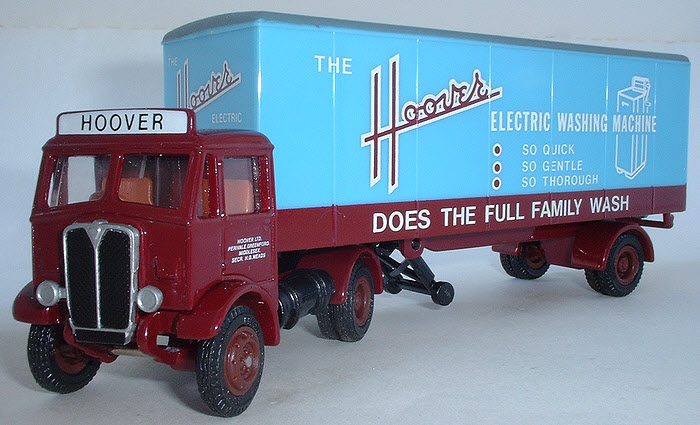 | Slogans | "The Hoover Electric Washing Machine - So Quick - So Gentle - So Thorough Does The Full Family Wash" on trailer sides. "The Hoover Electric Washing Machines" on front & rear of trailer. "Hoover" on cab header board and "Hoover Ltd. Perivale, Greenford, Middlesex. SECM. M. D. Meads" on cab doors. |