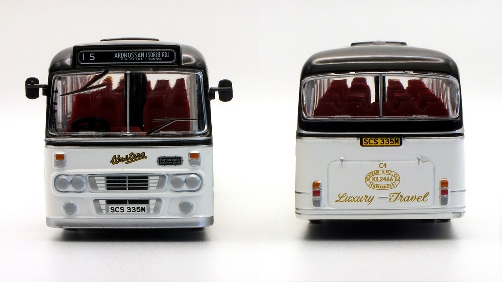 | Below are a selection of photographs showing the final production versions of the two models included in the recently released EFE Road Clydeside 2000 gift set. Thanks are extended to Bachmann Europe for supplying the set illustrated below. Standard Issue Gift Set E99944 Clydeside 2000 Set - AEC RML Class Routemaster & Alexander Y Type Dual Purpose Bus - UK RRP £93.95 E99944 Clydeside 2000 Set Packaging & Contents E99944 (model a - E39202) Clydeside 2000 - Alexander Y Type Dual Purpose Coach 630 (WFV 20R) - 17 Glasgow via Clyde Tunnel E99944 (model b - E42305) Clydeside 2000 - AEC RML Class Routemaster G99 (WLT 900) - Local Service Greenock Town Centre Below is a higher resolution set of photographs along with additional photographs of both models & the packaging which can be viewed as a slide show on YouTube, (Please use the Watch on YouTube link to access full screen mode.) |