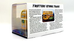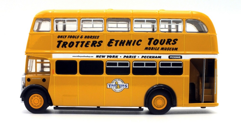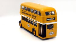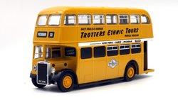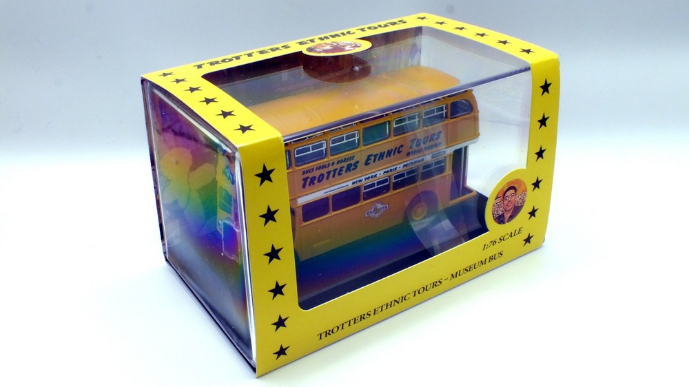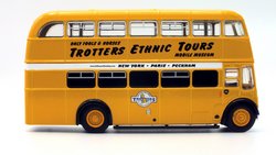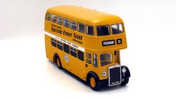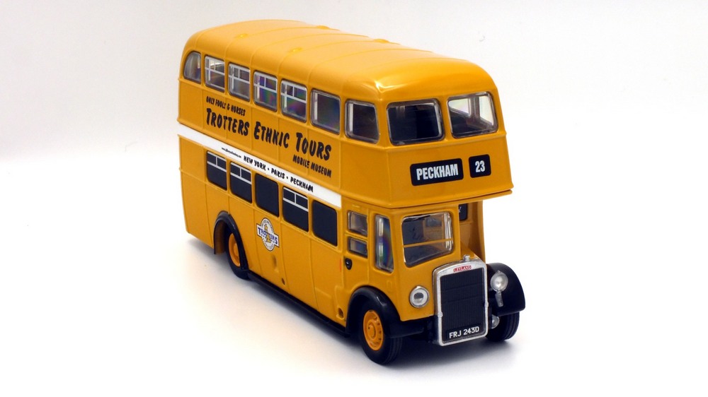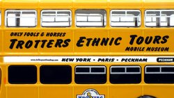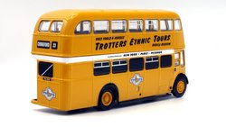 | The Only Fools & Horses Appreciation Society's latest 1:76 scale model is based on the Oxford Diecast Leyland Titan PD2 double decker. (76PD20xx series). The model depicts former Salford Corporation FRJ 243D which was used by the Society as a mobile exhibition vehicle. The yellow livery is reported to have been applied originally by Suffolk based confectionary business "The Chocolate Box" in the late 2000s. It attended the 2012 Showbus Rally and a photographs can be found on the Showbus.com site. If you like accurate models, then note that a fair degree of artistic license has been used. The real vehicle had a squarer MCW body with a forward entrance & platform folding doors. The livery is however, more or less correct. This is the first new release of this tooling since 2019; it will likely have been internally allocated an SPxxx series product code by Oxford Diecast. This lovely jobbly model is available directly from the Society's online shop & eBay store. It is priced £19.99 plus UK postage of £3.00 standard Royal, or £5.00 48hr Tracked. |